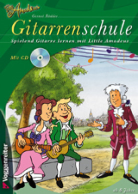 Du, deine Gitarre und Little Amadeus: tolle Gitarrenlektionen mit CD! Gitarre lernen mit viel Spaß und mit Little Amadeus,seiner Schwester Nannerl und seinem Freund Kajetan. Gemeinsam mit den Dreien lernt der junge Gitarrist die Grundlagen des Gitarrenspiels und der Musik. Lustige Illustrationen, Ausmalbilder, Lieder und Geschichten sorgen dafür, dass die Freude am Lernen und Musizieren von Anfang an die „erste Gitarre“ spielt. Eine zusätzliche Übe- und Motivationshilfe ist die beiliegende CD.