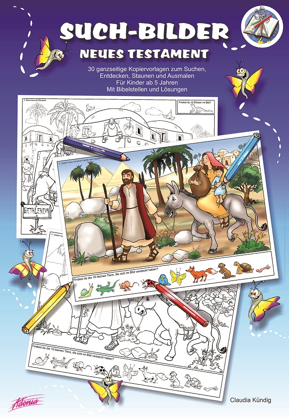 30 ganzseitige Kopiervorlagen zum Suchen, Entdecken, Staunen und Ausmalen. Es handelt sich um eher unbekannte Geschichten und Szenen aus der Bibel, wie z.B.: Zacharias kann nicht mehr sprechen/Hanna und Simeon im Tempel/Jesus heilt die Schwiegermutter von Petrus/Das Gleichnis vom Gastmahl/Das Gleichnis vom Schalksknecht/Jesus und die Ehebrecherin/Jesus und Nikodemus/Petrus und der Zauberer Simon/Paulus muss flüchten/und viele mehr. Mit Bibelstellen und Lösungen. Für Kids ab 5 J.