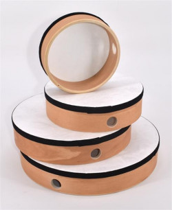 Für jede Gelegenheit die passende Trommel – oder einfach alle gleichzeitig spielen! Von hoch bis tief – mit diesem ultimativen Handtrommel-Set ist der abenteuerlustige Trommler für jede Gelegenheit bestens gerüstet und auf alle musikalischen Eventualitäten vorbereitet. Die laminierte Bauweise sorgt für äußerste Stabilität und guten Klang und mit ihren abgerundeten Korpuskanten liegen diese Trommeln perfekt und sicher in der Hand. Und wenn man gerade mal nicht spielt: das attraktive helle Holz kann man auch einfach nur ansehen ...